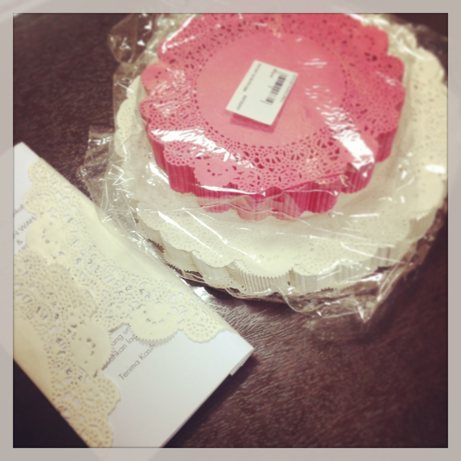 Kek tempah siap dari Secret Recipe. Untuk kek tak perlu pakai dulang cuma tapak polisterin, jadi dulang beli 6 je dah cukup.